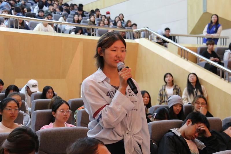 在互动环节,学生们争相提问。“危急时刻如何抉择?”“事后是否会害怕?”英雄们坦诚回应并寄语大学生。内蒙古师范大学孙舒瑄同学感慨:“现场聆听比视频更震撼,平凡人的伟大激励我们多一份正直与善良!”内蒙古大学张子赫同学表示:“要以英雄为榜样,践行正义与担当!”