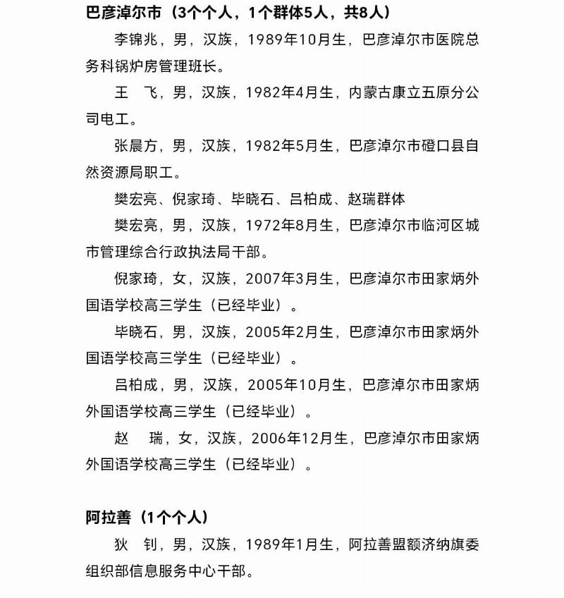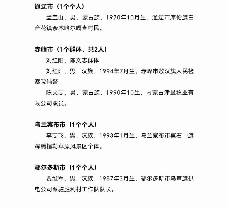 2025年第一届“内蒙古见义勇为勇士榜”名单